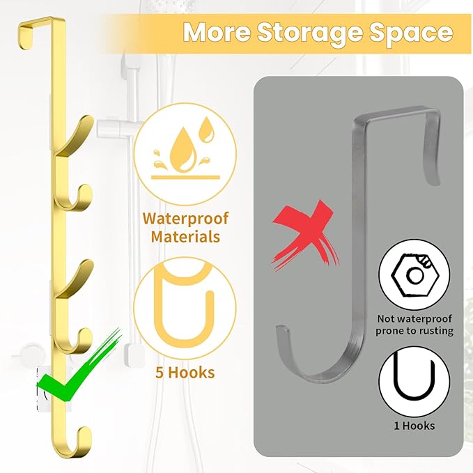 - 【Beautify Your Home】Towel hanger for bathroom has been upgraded from a single hook to five hooks, providing more storage space and helping to keep your home organized and tidy.