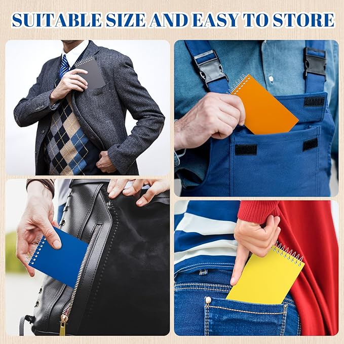 - Top Spiral Bound: each pocket memo pad adopts top spiral binding, so the page can lay flat for a more comfortable writing condition for right or left handed users; And the unobstructed spiral binding design won't hang up on clothes or backpacks, very thoughtful