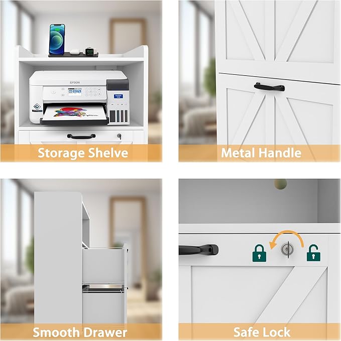 - 【Farmhouse Style Filing Cabinets】This white 2 drawer file cabinet with lock features matte iron-tone metal pulls for a vintage opening and closing method. The unique pattern in this modern cabinet, creates a clean and natural style.