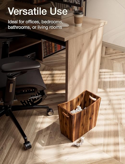 3 Gallons Rectangular Wastebaskets - Acacia Wood Waste Basket with Handles - Small Trash Can for Bathroom - Brown Garbage Bin for Spa Bathroom Decorative, Kitchen Counter, Living Room (Walnut)