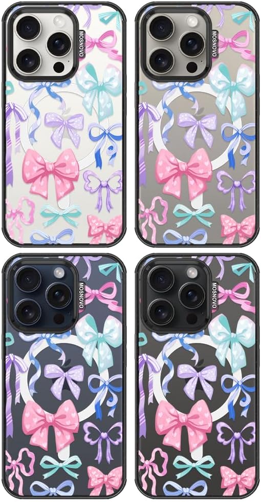 MOSNOVO Magnetic Case for iPhone 15 Pro, 10ft Military-Grade Protection, Compatible with Magsafe, Shockproof Phone Case for iPhone 15 Pro - Bows - Clear Black
