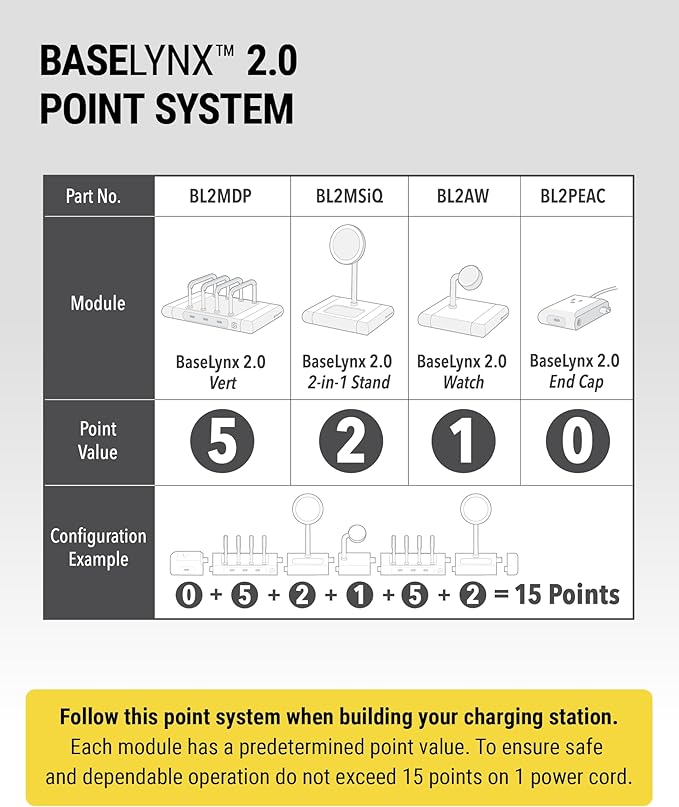 - Versatile Charging Station: The BaseLynx 2.0 modular system, featuring phone holders and chargers for Apple Watch, iPhone, iPad, AirPods and MacBook, keeps your devices organized and fully charged in one streamlined setup, powered by the included 6-foot AC power cable