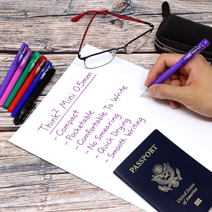 - 【High Quality】 - Think2 Compact Gel Pens 6 Variety of Colors (Black, Blue, Red, Pink, Purple, Green) are the perfect writing instrument. These tiny little pens are ideal for schools, office, home, teachers, kids, children, girls, students, etc