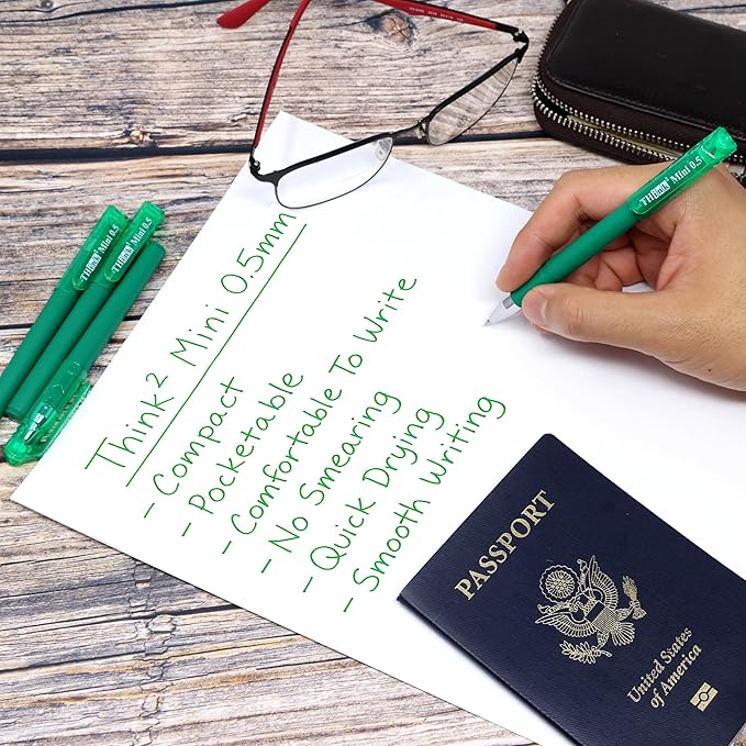 - 【High Quality】 - Think2 Compact Green Gel Pens are the perfect writing instrument. These tiny little pens are ideal for schools, office, home, teachers, kids, children, girls, students, etc.