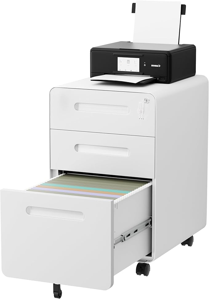 - [Modern Rounded Corner Design]:This LVSTEEL filing cabinet, with its iconic rounded corner design and smooth surface, injects elegance and simplicity into modern office spaces. This design not only enhances the visual beauty, but also fits into a variety of interior decoration styles. The embedded handle design not only maintains the minimalist style of the appearance, but also ensures the convenience of daily use