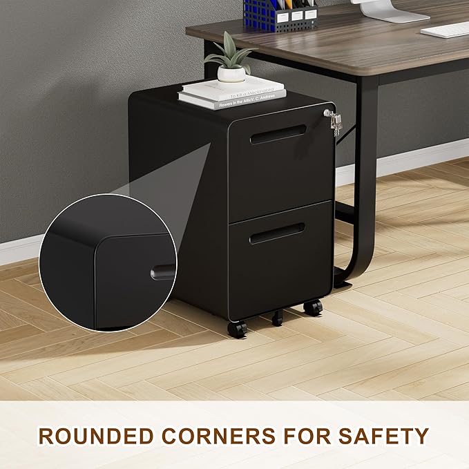 - [5 360°Swivel Casters,Synchronous Lock Security System]:LVSTEEL filing cabinet is equipped with 2 locking casters, 2 360° swivel casters and 1 anti-tilt wheel to ensure flexible movement and stability and safety. At the same time, the synchronous lock security system on the top can lock two drawers at one time and comes with four keys, effectively protecting the safety of internal documents and personal belongings.