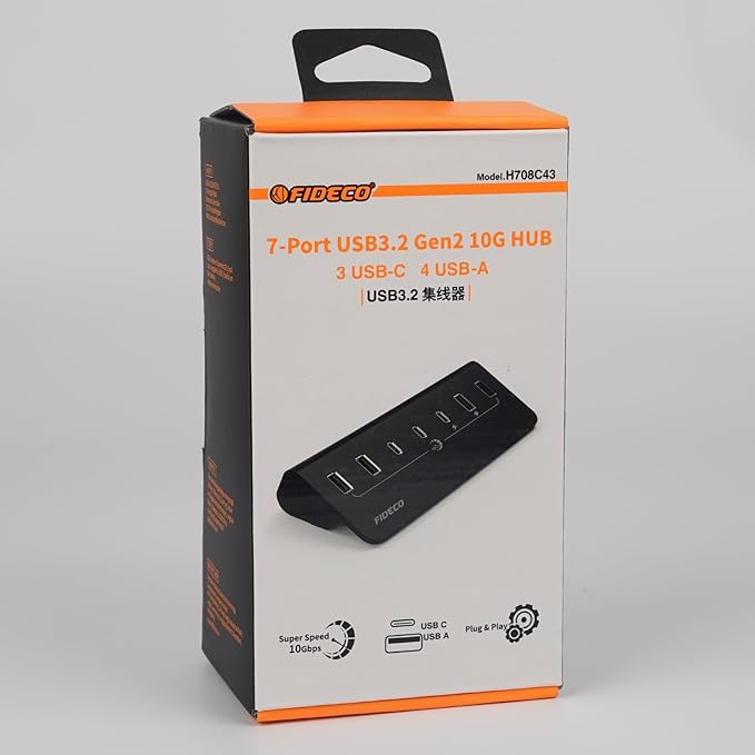 - 【10Gbps Super Speed】FIDECO USB hub features USB 3.2 Gen 2 standard with maximum data transfer speed up to 10Gbps, and it will greatly improve your work productivity and connectivity.
