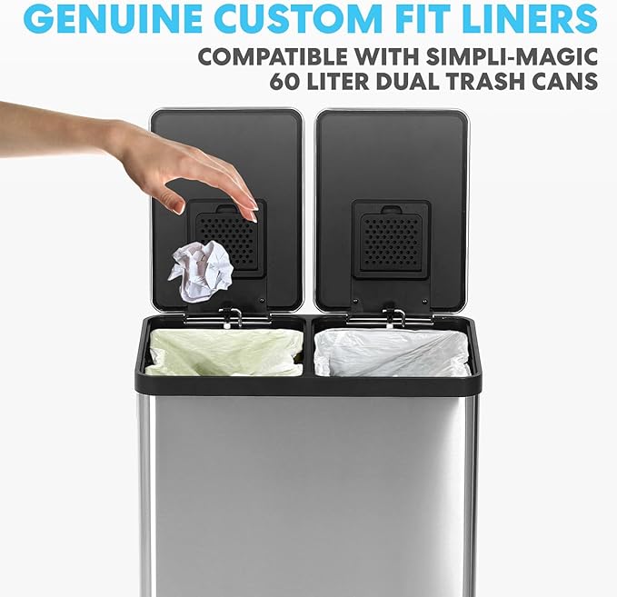 - GENUINE CUSTOM FIT LINERS - Simpli-Magic custom made liners are made to fit our cans perfectly so they don't slip, and provide a clean and sleek look