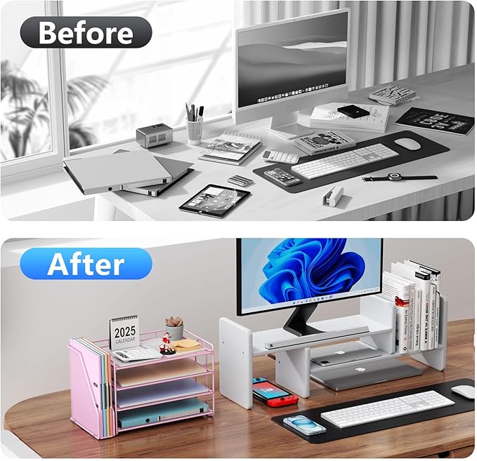 - 【Enhance Your Desktop】With its sleek and modern design, this desk file organizer combines functionality and aesthetics, serving not just as a practical storage solution but also as a stylish desktop decor piece. Instantly enhance the ambiance of your workspace, adding a touch of sophistication to your office environment.