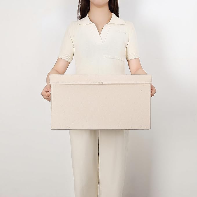 Foldable Storage Bins with Lids Cotton Canvas Rectangular Storage Box Ideal for Organization Lightweight and Durable (L)
