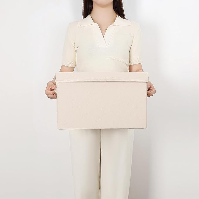 - 【Foldable & Lidded】: These cotton canvas storage bins come with lids, keeping your items secure and dust-free. When not in use, simply fold them flat for convenient storage.