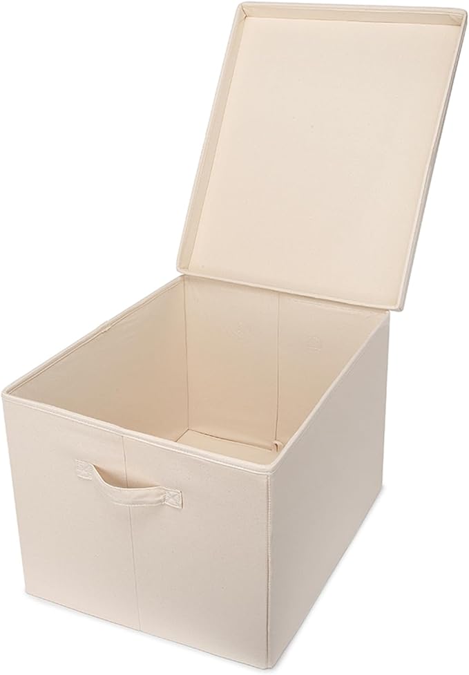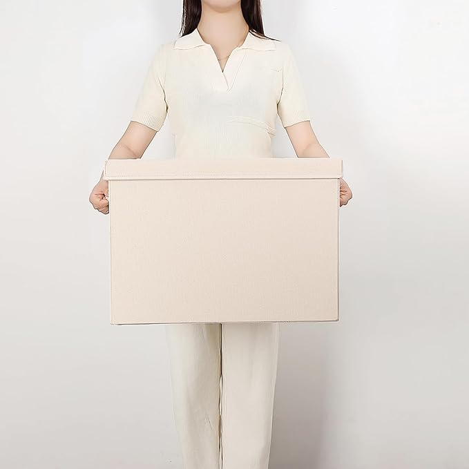 Foldable Storage Bins with Lids Cotton Canvas Rectangular Storage Box Ideal for Organization Lightweight and Durable (XXL)