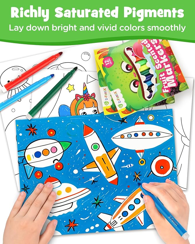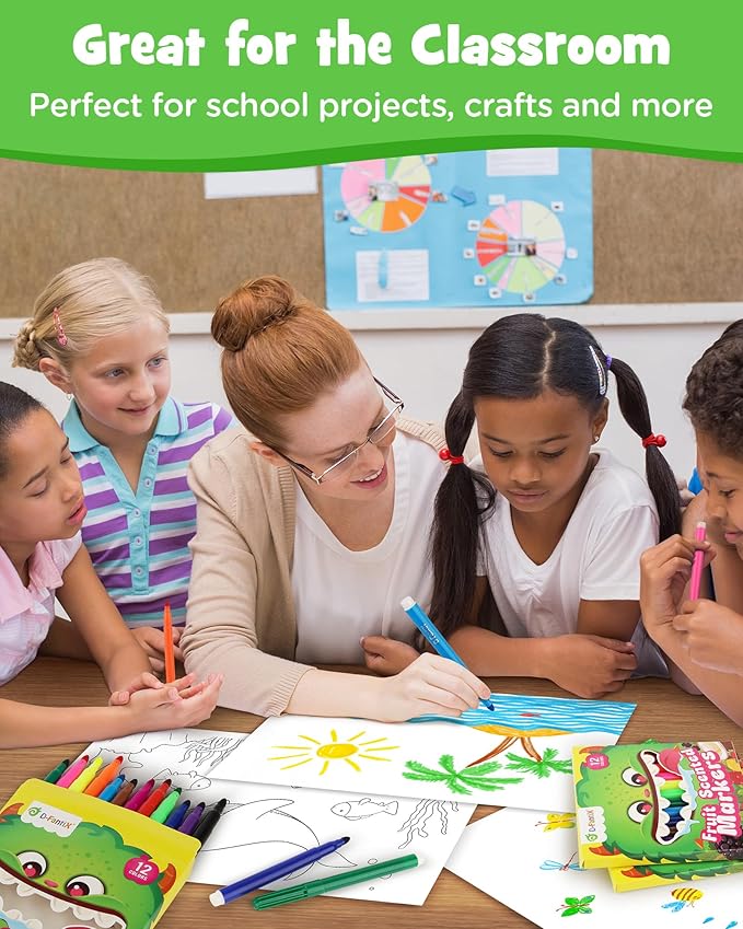 D-FantiX 12 Packs Fruit Scented Washable Markers for Kids Toddlers, 144 Count Coloring Markers Set, Bulk Art Supplies, Back to School Supplies, Gifts for Party Favors, Classroom Prizes, Donations