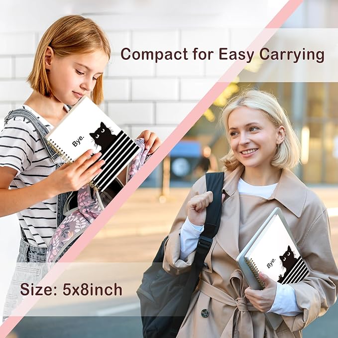 - 【Convenient Size】 Our spiral notebook is approximately 5.5 x 8.3 inches (13.97 x 21.08 cm),80 Sheets -160 Pages . The pages are college-ruled (line spacing: 0.31 inches), ensuring your handwriting remains neat. This size is ideal for your journaling or note-taking needs. It’s also highly portable, allowing you to write anytime and ywhere.