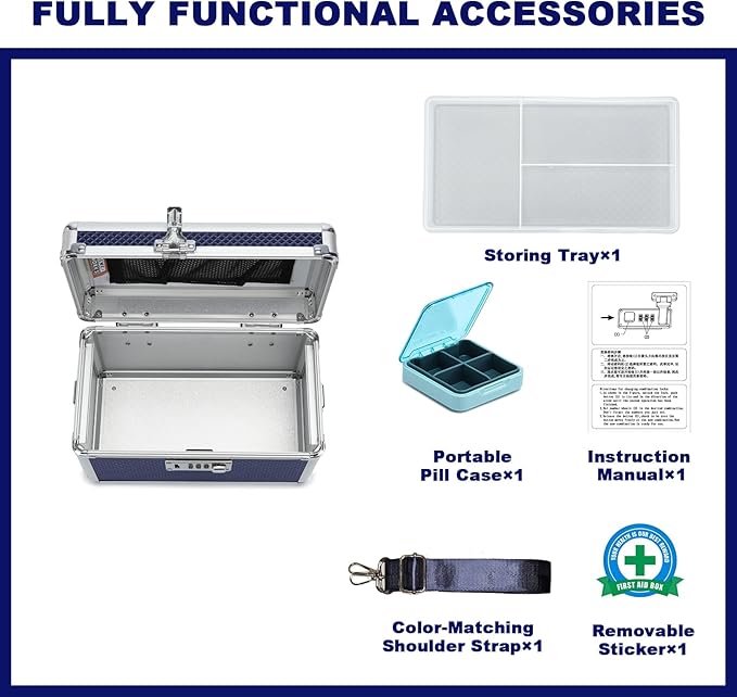 - 【REMOVABLE ACCESSORIES FOR USER-FRIENDLY APPLICATION】 With a removable First Aid sticker, top tray, and adjustable shoulder strap, users can customize the storage box to suit their needs. It can be used to securely store cash, jewelry, cosmetics, ID documents, and other valuables, making it versatile for various venues. It also makes a perfect gift for family, friends, or employees, expressing your care and thoughtfulness. We hope you enjoy organizing and securely locking away your most cherished items.