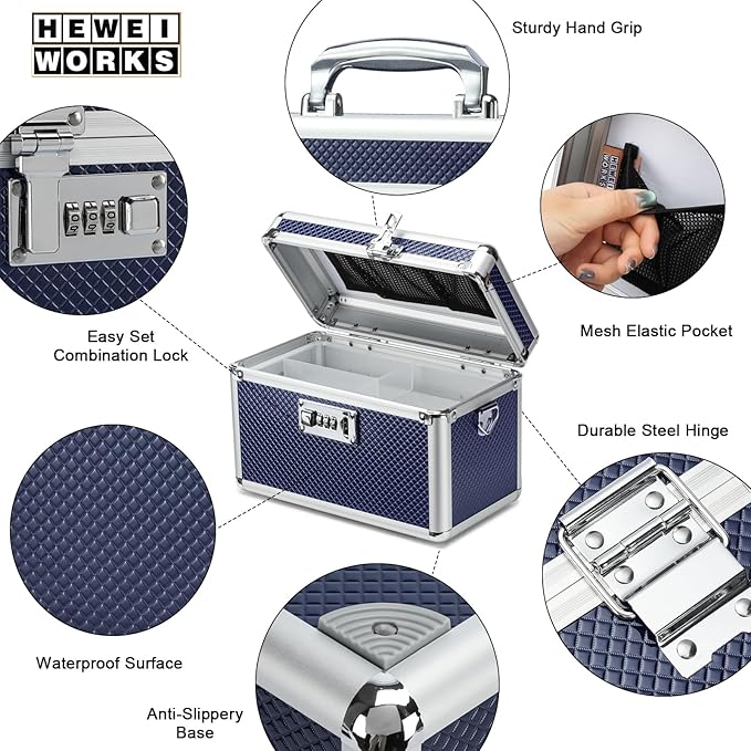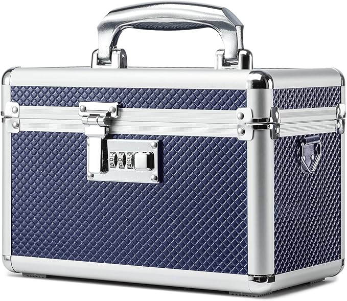Storage Lock Box with Combination code, Lockable Medicine Storage Case, Empty First Aid Box, Security Lock Box, Multipurpose Lockbox for Home and Outdoor Use (Blue, Small)
