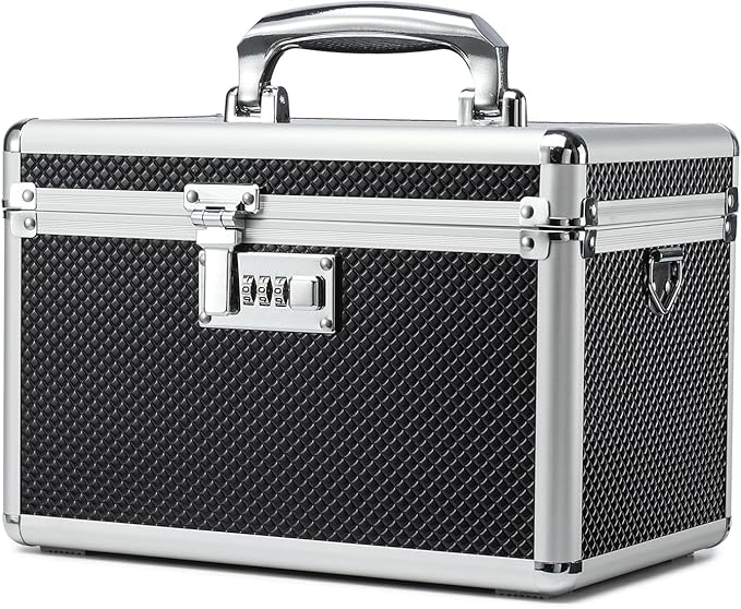 Storage Lock Box with Combination code, Lockable Medicine Storage Case, Empty First Aid Box, Security Lock Box, Multipurpose Lockbox for Home and Outdoor Use (Black, Medium)