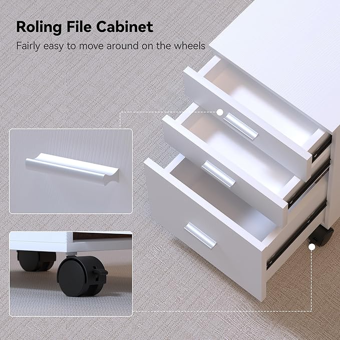 3 Drawer Mobile File Cabinet on Wheels,White Rolling Storage Cart Organizer for Letter/A4 Files, Ideal for Office, Home, Classroom Organization,Printer Stand,19" L x 16" W x 22" H