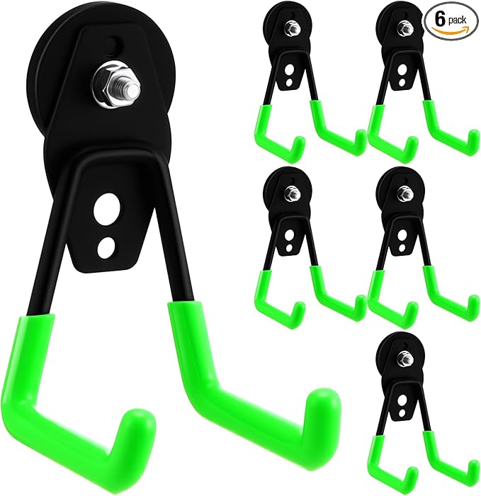 Landhoow Large Magnetic Hooks Heavy Duty Garage Magnet Hooks Strong Storage Utility Magnetic Hangers with Anti Slip Rubber Coating for Indoor and Outdoor Hanging(Green,6 Pcs)