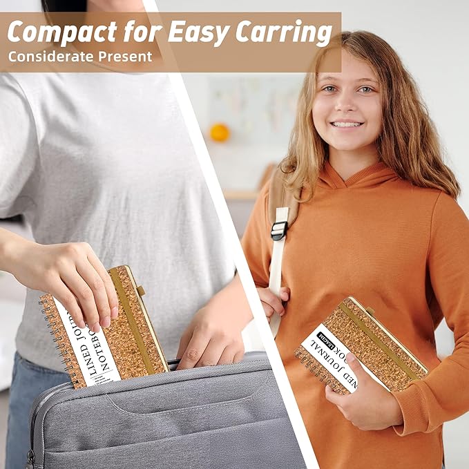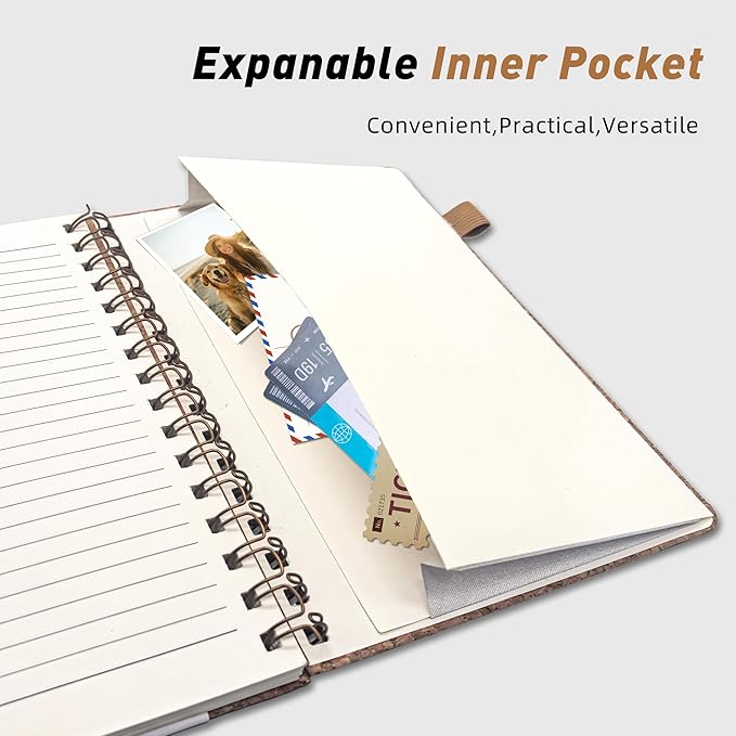 - 【Strong Spiral】Our cork cover lined spiral journal notebook is built to last with a sturdy metal twin-wire binding and a tough hardcover, easy-to-turn pages and keeps pages attached reliably, it’s the perfect notebook for journaling, taking notes and planning.