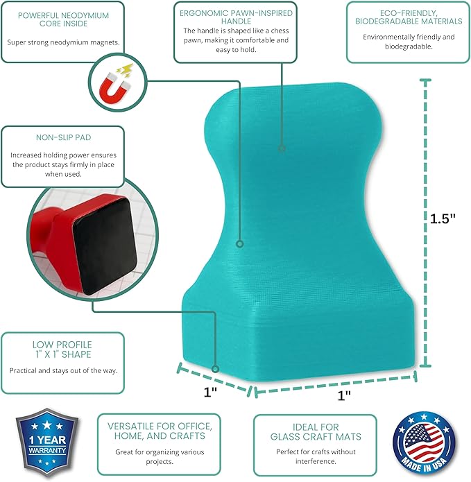 Glassboard Studio MiniBar Magnet - Strong Neodymium Rare Earth Magnets for Fridge, Whiteboard, Locker & Magnetic Glassboards - Crafting & Office Use - Strong Fridge Magnets (Seaside Teal Pawn, 12)