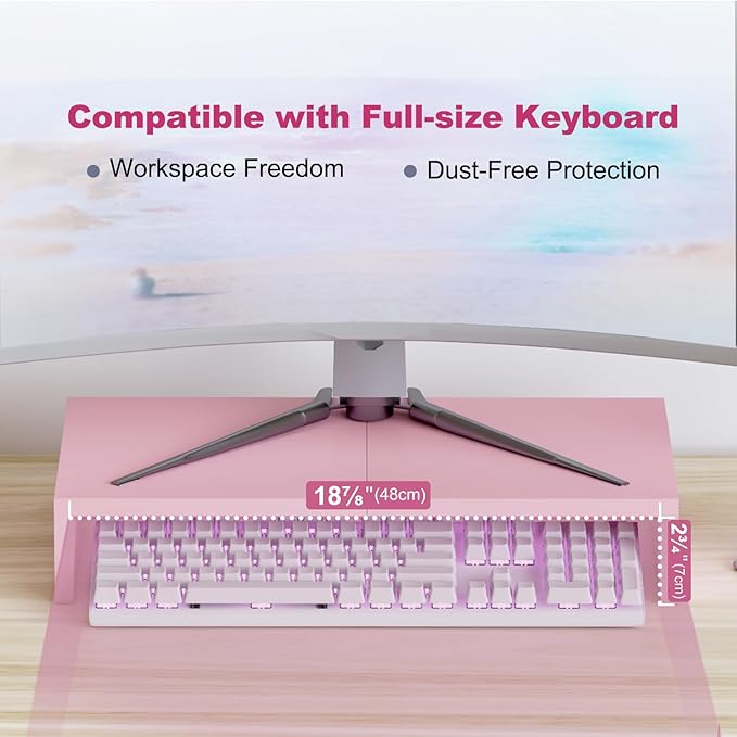TEAMIX 2 Pack Pink Monitor Riser-20L inch, Cute Monitor Stand for Desk, Wood Sturdy TV/Screen/PC/Printer/Laptop Riser, Computer Shelf with Storage Desktop Organizer for Home Office
