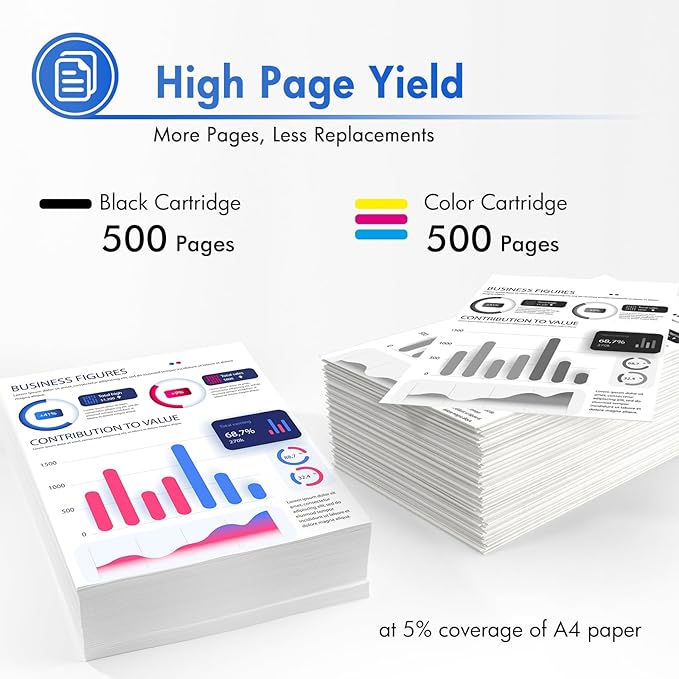 - High Page Yield: High yields up to 500 pages per ink cartridge (5% coveragae*A4 paper size)