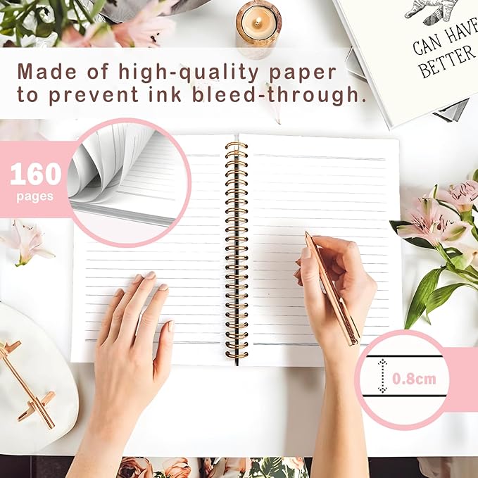 - 【Convenient Size】 Our spiral notebook is approximately 5.5 x 8.3 inches (13.97 x 21.08 cm),80 Sheets -160 Pages . The pages are college-ruled (line spacing: 0.31 inches), ensuring your handwriting remains neat. This size is ideal for your journaling or note-taking needs. It’s also highly portable, allowing you to write anytime and anywhere.