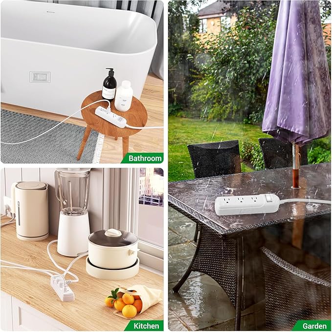 - 【Compact Multi-Function Design】: Featuring 3 wide-spaced AC outlets designed to accommodate large adapters without interference. The 12 foot extension cord provides extended reach for versatile placement in homes, gardens, or RVs.