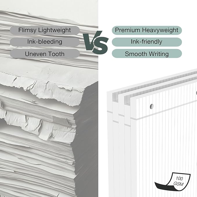 - Premium Quality & Durable Lined Paper: POPRUN Loose Leaf Paper contains 100 sheets (per Pack) of 100GSM / AA Grade thick white paper— equivalent to the thickness of 125 sheets of 80GSM paper — paired with a bleed-resistant surface that enables effortless writing with pens or pencils.