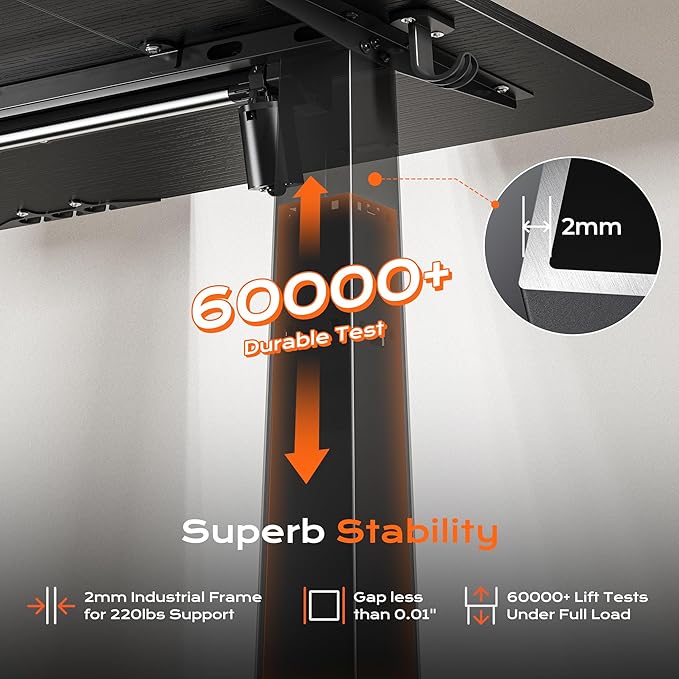 - 【Built to Last with Exceptional Stability】The industrial-grade steel frame and T-shaped design of the stand up desk support up to 220 lbs, ensuring stability and reliability for years to come. Paired with a durable motor, this home office desk is designed to meet the demands of your dynamic workday