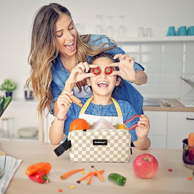 Cerbonny Small Cooler Bag Freezable Lunch Bag for Work School Travel,Small Lunch Bag,insulated snack bag For Adults/Kids,Mini Cooler,Lunch bag small Fit For Yogurt(Khaki Checkerboard