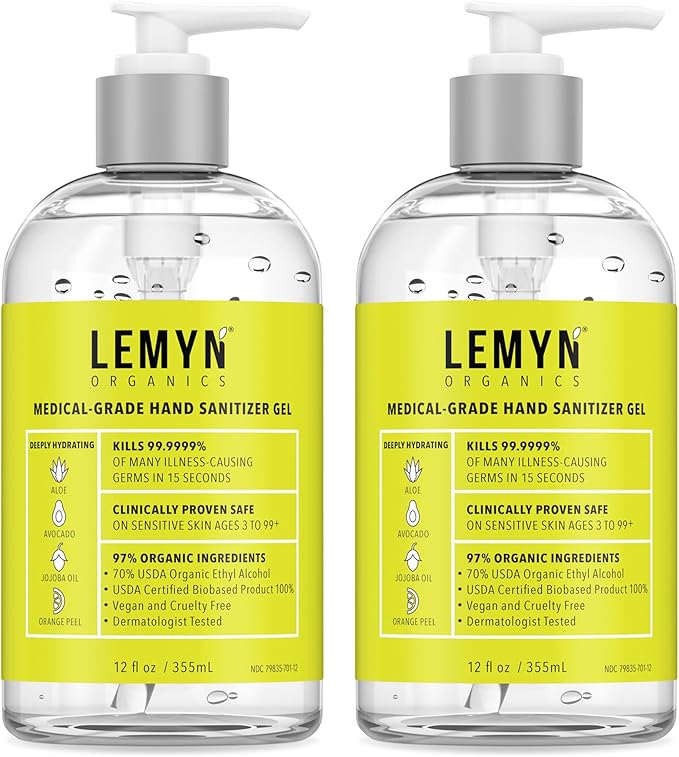 Medical Grade Hand Sanitizer Gel - 97% ORGANIC - 12 FL.OZ. (PACK OF 2)
