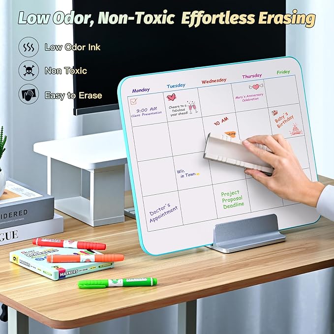 - Safe, Low-Odor & Slim Design: Our Dry Erase Markers non-toxic formula means less smell β safe for kids & pets! The comfortable, slim barrel is easy for small hands and precise writing, while the built-in clip lets you easily attach it to pockets or notebooks.
