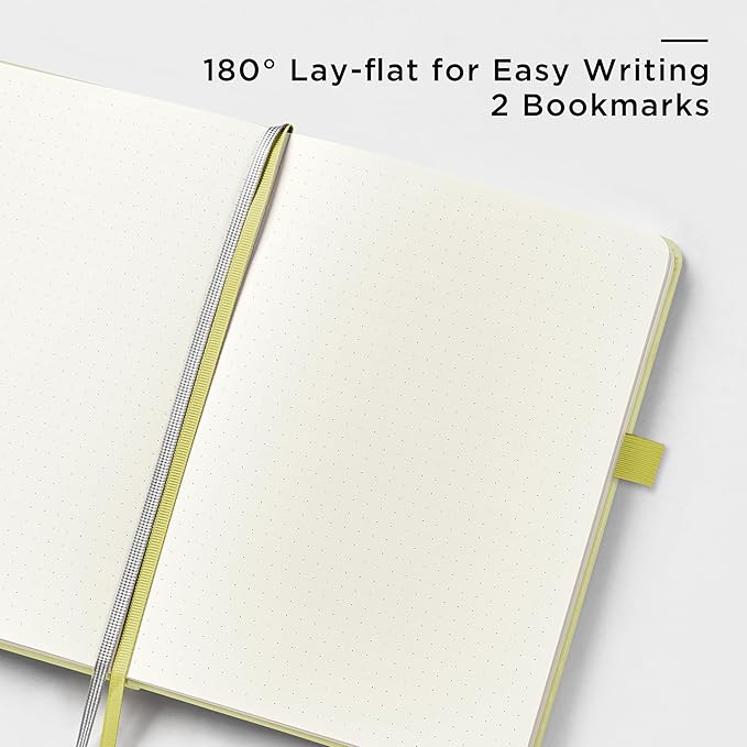 - 180° LAY-FLAT DESIGN: The lay-flat design allows for easy writing and ensures that you can utilize every page efficiently. Journaling, note-taking and planning has never been easier! 2 Bookmarks to help you find important content faster