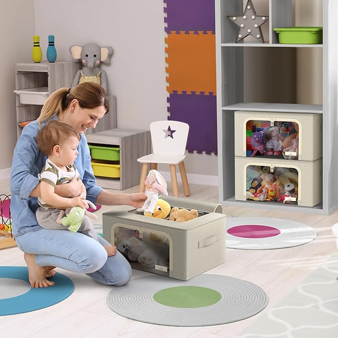 Sorbus Storage Bins with Metal Frame - Stackable & Foldable Clothes Organizer Bags - Oxford Fabric Storage Containers with Large Clear Window & Carry Handles, Bedroom Organization for Bedding & Linen