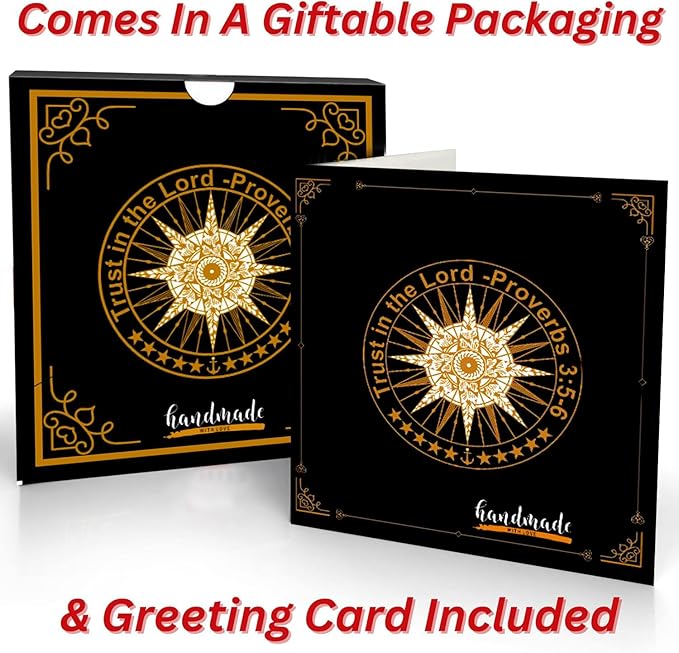 Trust in The Lord With All Your Heart - Proverbs 3:5-6 Quote Engraved Compass With Wooden Box, Greeting Card, Gift Compass, Graduation Day Gifts 2024 for Women Men Boys Girls