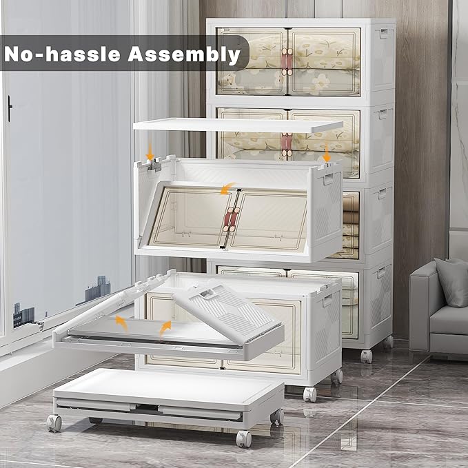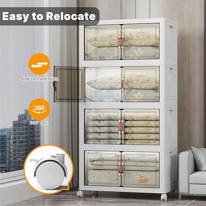 Extra Large Stackable Storage Bins with Lids & Wheels & Door, 640QT-160QT/40GAL*4Pack Foldable Collapsible Closet Organizers, Plastic Containers Drawers for Bedroom Dorm Garage Sturdy MAX