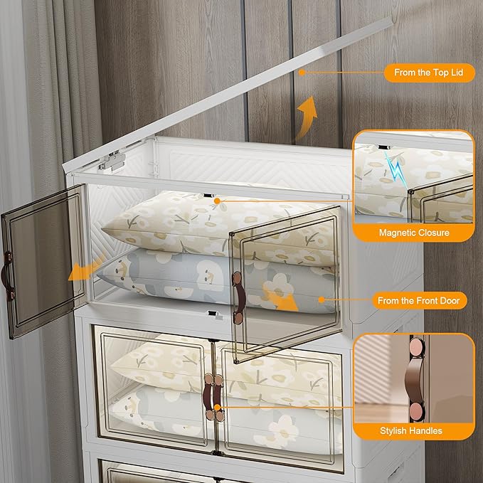 - 【Multi-Access Design for Effortless Organization】: Our versatile stackable storage bins open front offer front-opening bins for quick grab-and-go access. Use stackable storage bins with lids or stackable storage bins with doors to conveniently access items while keeping them protected and neatly contained.