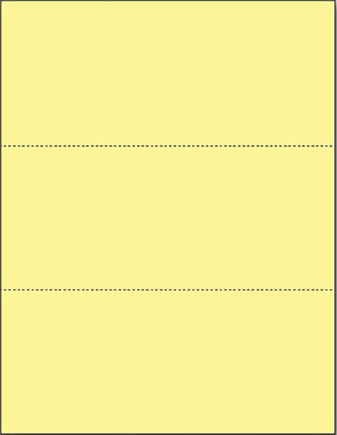 Limited Papers (TM) 8.5x11 Perforated Paper, 20/50 Pound, 75 GSM, Variety of Perforation Sizes and Colors, for Forms, Tickets, Postcards. (Canary, 3 up - horizontal 3 2/3" and 7 1/3" from bottom)