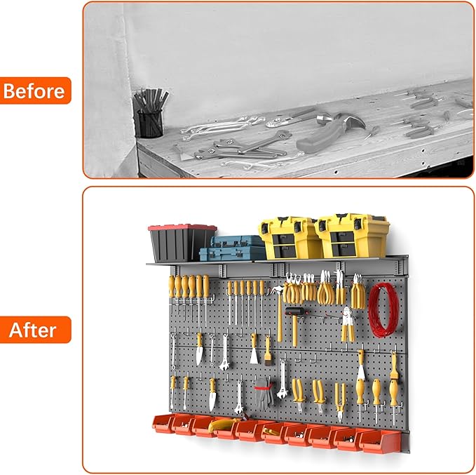 - Space & Time & Money Saving: This tools organizer pegboard kit is a great way to clean up a messy workbench and drawer, keeps your tools organized and accessible. Stop losing small tools and save space, time, and money