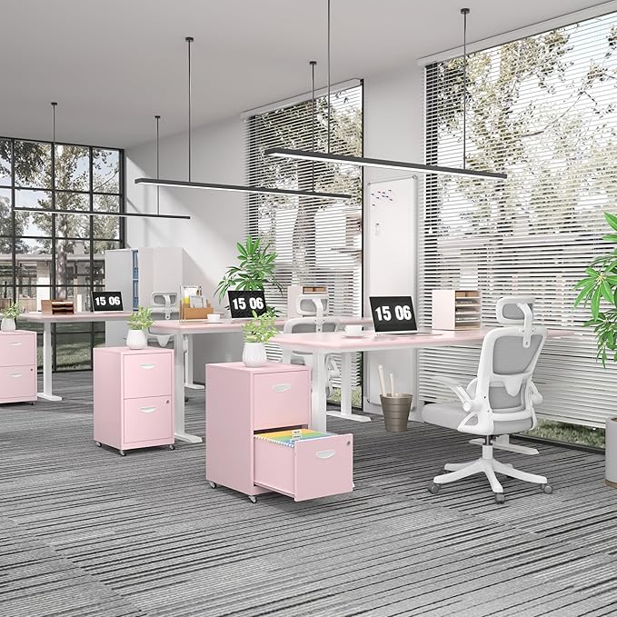 2 Drawer File Cabinet with Lock,Pink Rolling File Cabinet for Home Office, Metal Small Mobile Filing Cabinets on Wheels for Hanging Letter