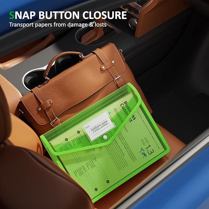 - STURDY & SNAP CLOSURE:The file organizer is made of sturdy plastic with reinforced fabric on both sides. Coupled with its snap-closure design, it is thicker, sturdier and more durable than traditional paper folders. The portable file organizer can ensure that your documents are kept safe.