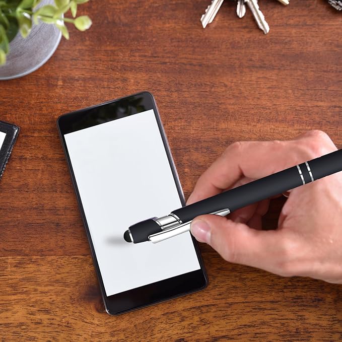 24 Pcs Blue Ink Ballpoint Pen with Stylus Tip 2 in 1 Ballpoint Pen 1.0 mm Blue Ink Metal Stylus Pen for Touch Screens Coworkers, Family, Colleagues, Office (Black)
