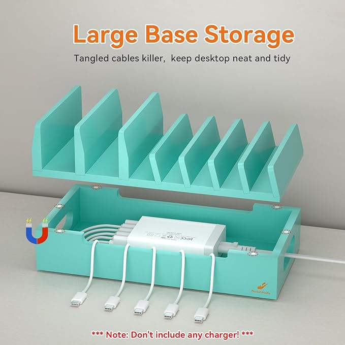 - Fashion Creative Design: Magnetic base ensure that the charging station assemble and disassemble easily; Wide base - allows you to hide all cables and power strips or USB hubs to keep the cables neatly and save space