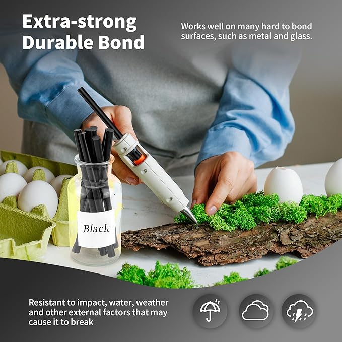 - Wide Application - Black Colored glue sticks for crafting, card making, scrapbooking, carton sealing, phone case beauty, electronic appliances, gluing projects, waxing seal stamp, general repairs,creating arts, holiday crafts, decorations, home, office, school DIY and toys gluing projects.
