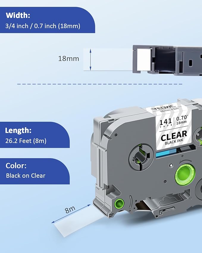 - Ease of Use: Featuring a residue-free removal design, the laminated TZe Black on Clear tape (18 mm, 0.7") allows for quick and effortless application. Tze-141 Tz Labels can be updated without leaving sticky residues or damaging surfaces.