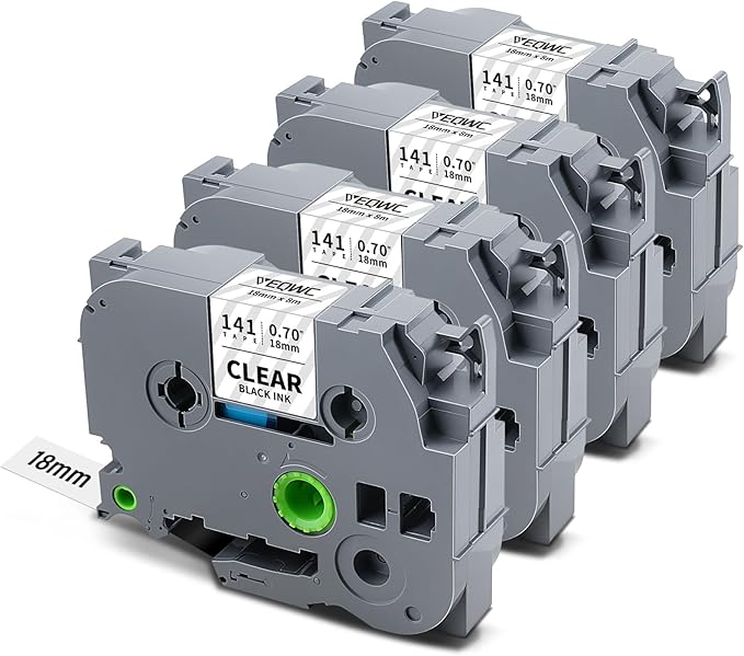 TZe-141 18mm 0.7 Laminated Clear Tape Compatible for Brother TZe141 Tz-141 P Touch 3/4" TZe TZ Tape for Brother Ptouch PT-D610BT PT-D400 PT-D600 PT-D410 PT-D460BT Label Maker, Black on Clear, 4-Pack