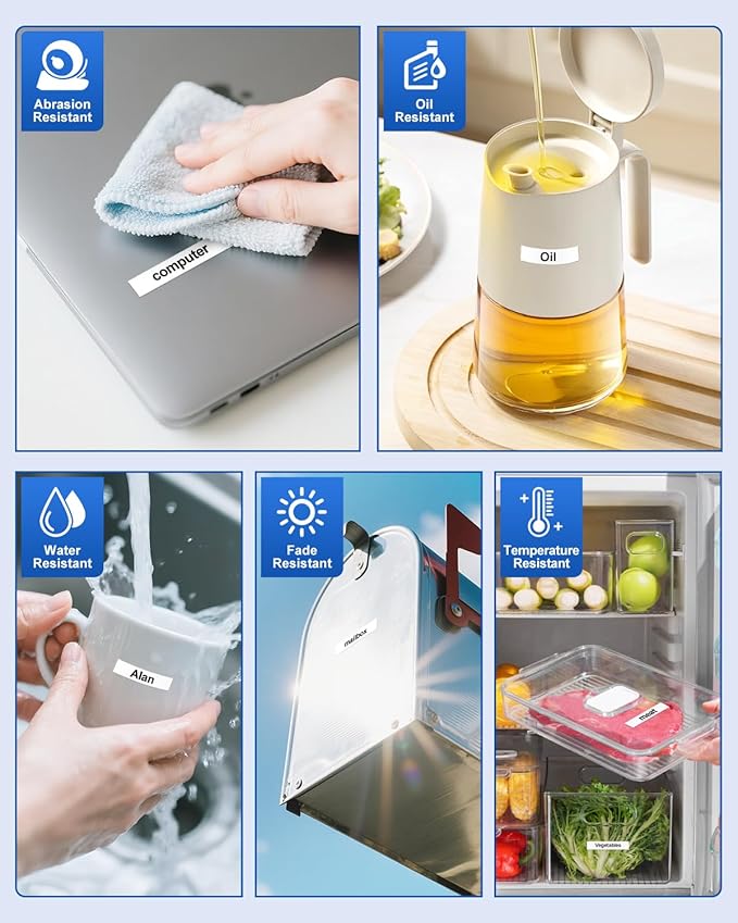 - Features: Our 9mm label tape split design makes the label tape easy to peel and apply, with strong adhesion/waterproof/temperature/oil/abrasion/fading, and reliably sticking to various surfaces