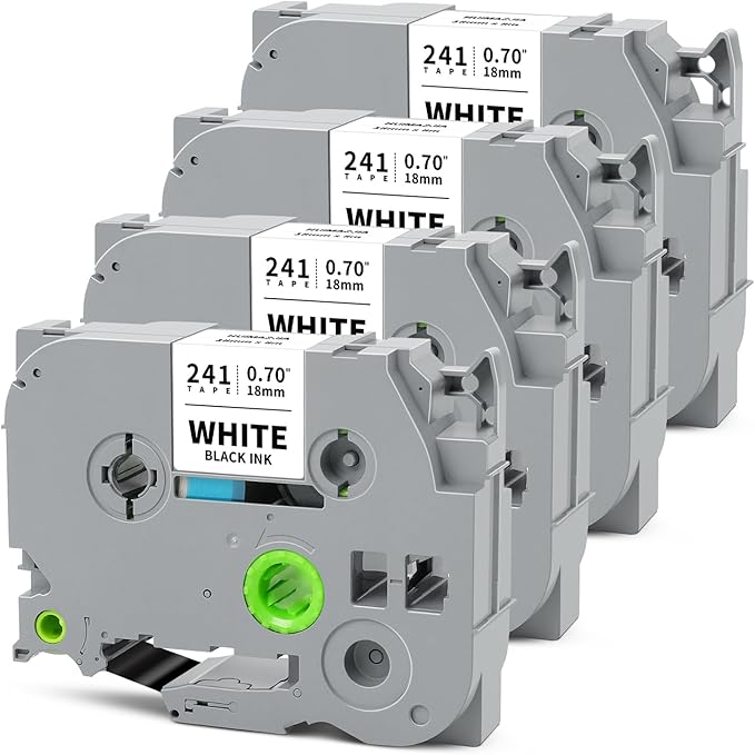 - Packages: 4-Pack 18mm 0.7" white label tape compatible with Brother tze-241 tze tz tape 18mm 0.7 black on white. Color: Black on White. Size: 3/4 inch (18mm 0.7") x 26.2 feet (8m)